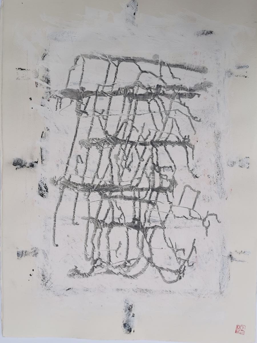 Pilinszky zárt kertje – merített papír – tempera, monotípia – 70×50 cm – 2023