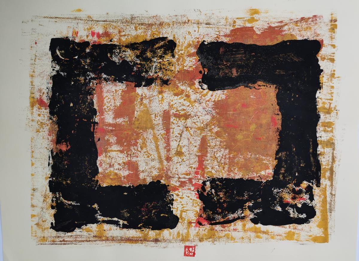 Ősz egy japán kertben – papír – tempera, monotípia – 70×100 cm – 2023