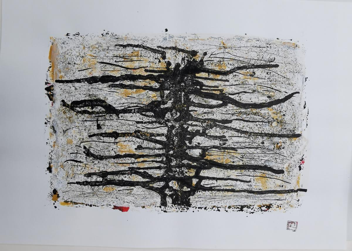 Max Ernst téli kertje – papír, tempera-monotípia – 44×50 cm – 2022
