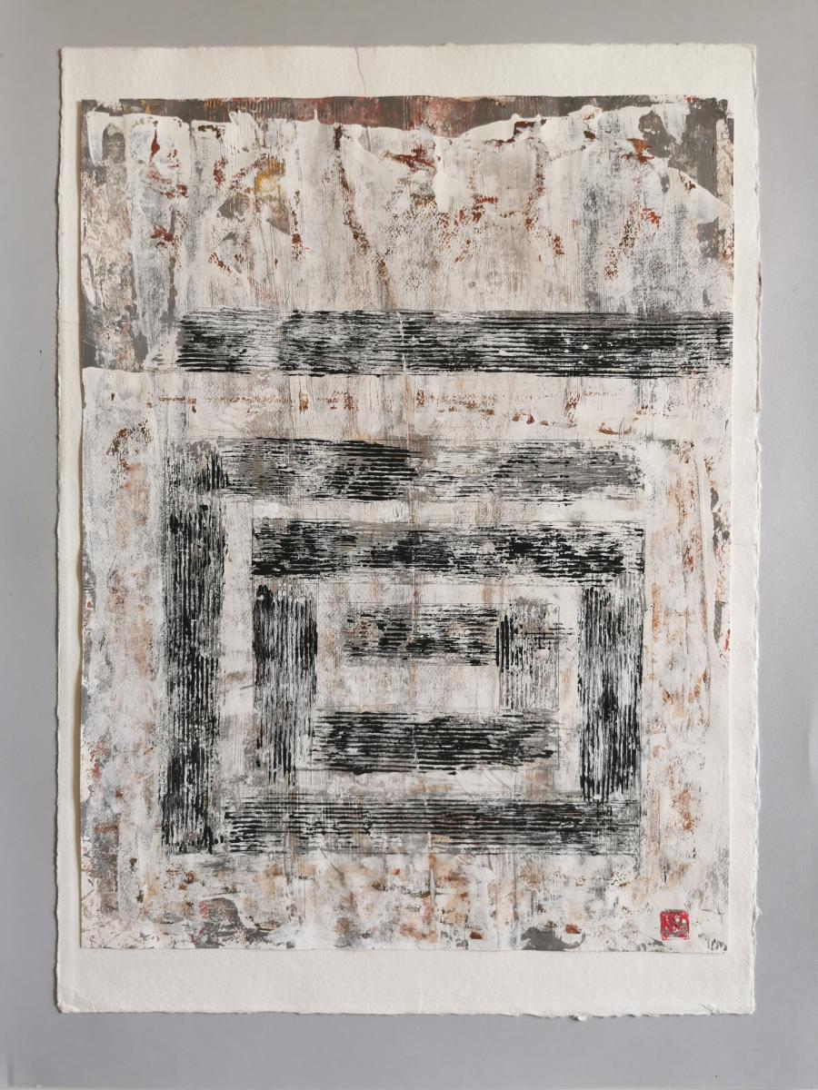 Kováts Albert labirintus kertje – papír, tempera-monotípia – 70×50 cm – 2023