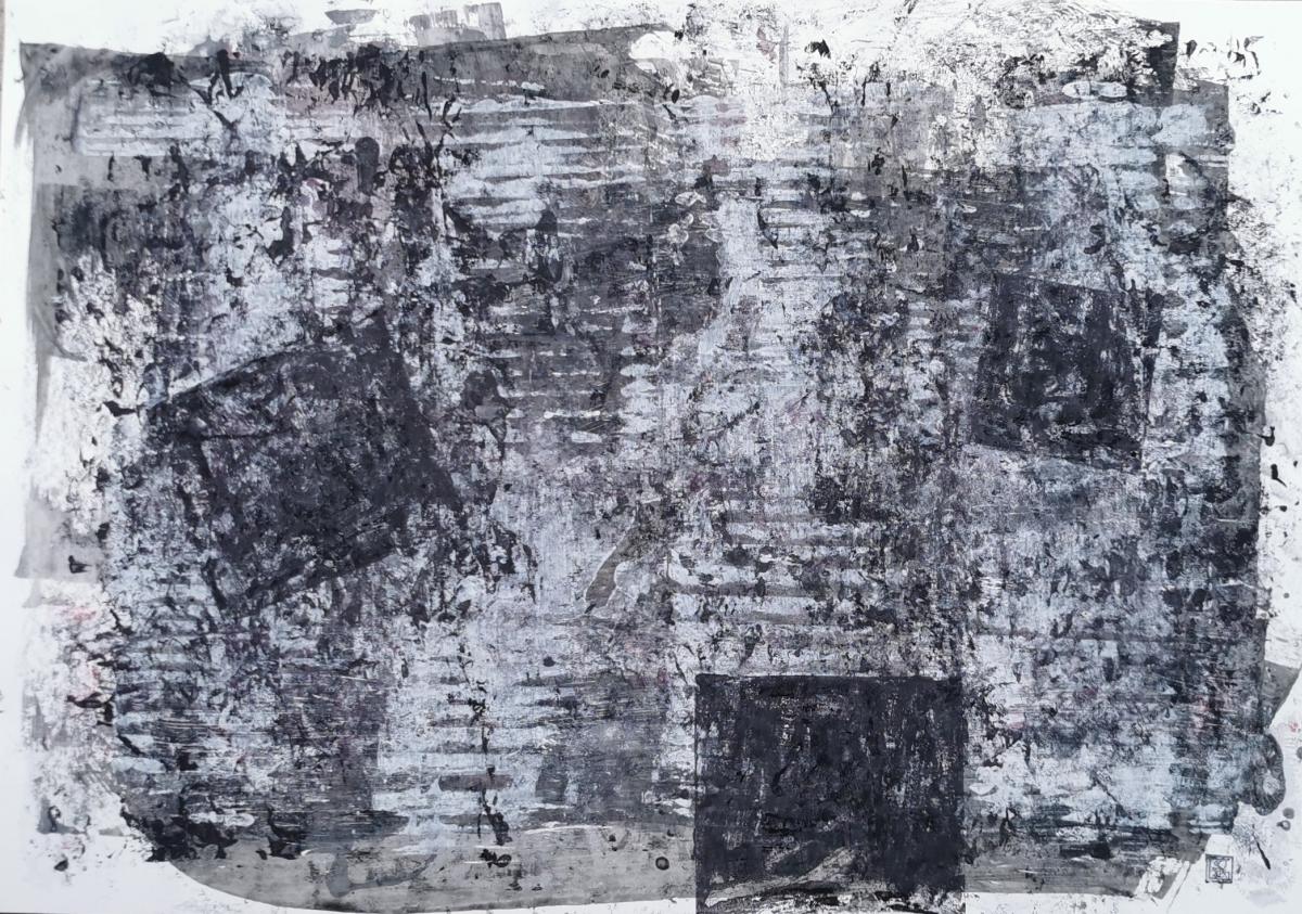 A csönd kertje – Molnár Péternek – papír, vegyes technika – 60×84 cm – 2020 – Dr. Mészáros Zsolt Gyűjtemény