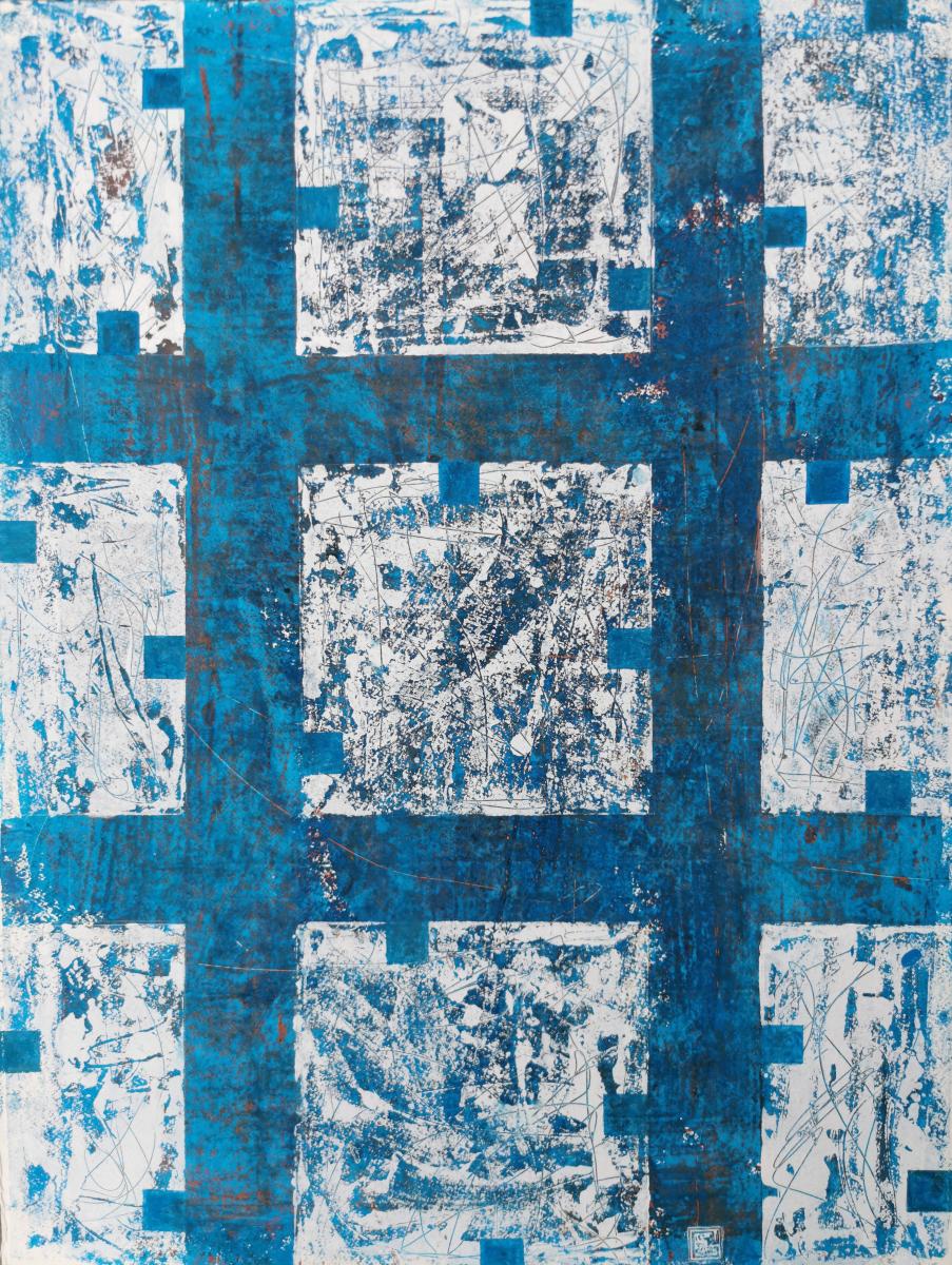 Kék utak a kertben – papír, tempera – 76×56 cm – 2025