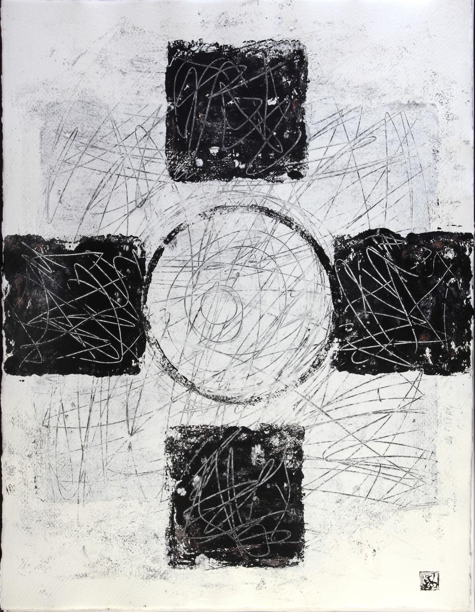 Kör-Kert – fotókarton, tempera – 40×40 cm – 2025